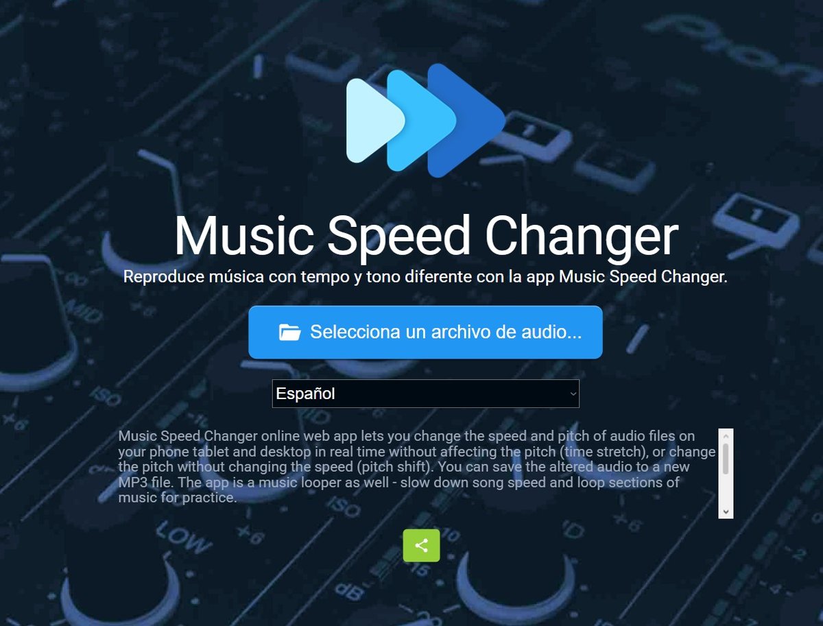 El mayor problema al practicar bachata en casa es que la música original va demasiado rápido para un principiante, lo que genera frustración al perder el ritmo del "1, 2, 3, pic". Esta aplicación gratuita te permite coger cualquier canción de bachata que tengas y ralentizar la velocidad sin que la voz del cantante suene distorsionada. Es la herramienta definitiva para ensayar los pasos lentos hasta automatizarlos. Puedes desde la web y hay app para android y IOS