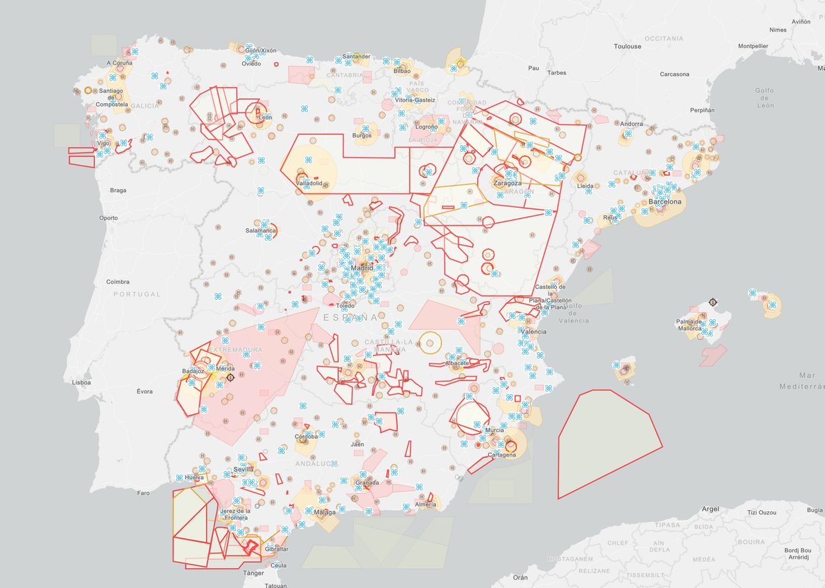 Si vuelas un drone en España, esto es lo más básico que tienes que tener en cuenta antes de echar el vuelo. Si la zona donde quieres volar está marcada en este mapa como restringida, ni lo intentes volar, no va a merecer la pena la multa que te puede caer por volar un rato.